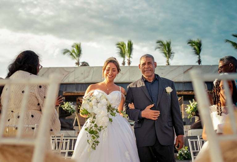 "Estábamos nerviosos por la boda y no conocíamos a Luis en persona hasta ese día. Pero desde el momento en que entró a la habitación mientras me maquillaba, supimos que elegimos al fotógrafo perfecto. El ambiente tenso se transformó inmediatamente en calma y risas. Su equipo es increíblemente profesional, nos hizo sentir tan cómodos que capturaron cada momento y emoción de manera auténtica. ¡Una elección 10/10!"